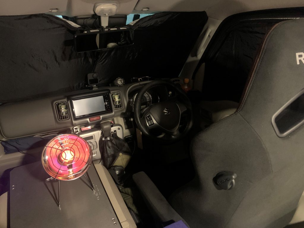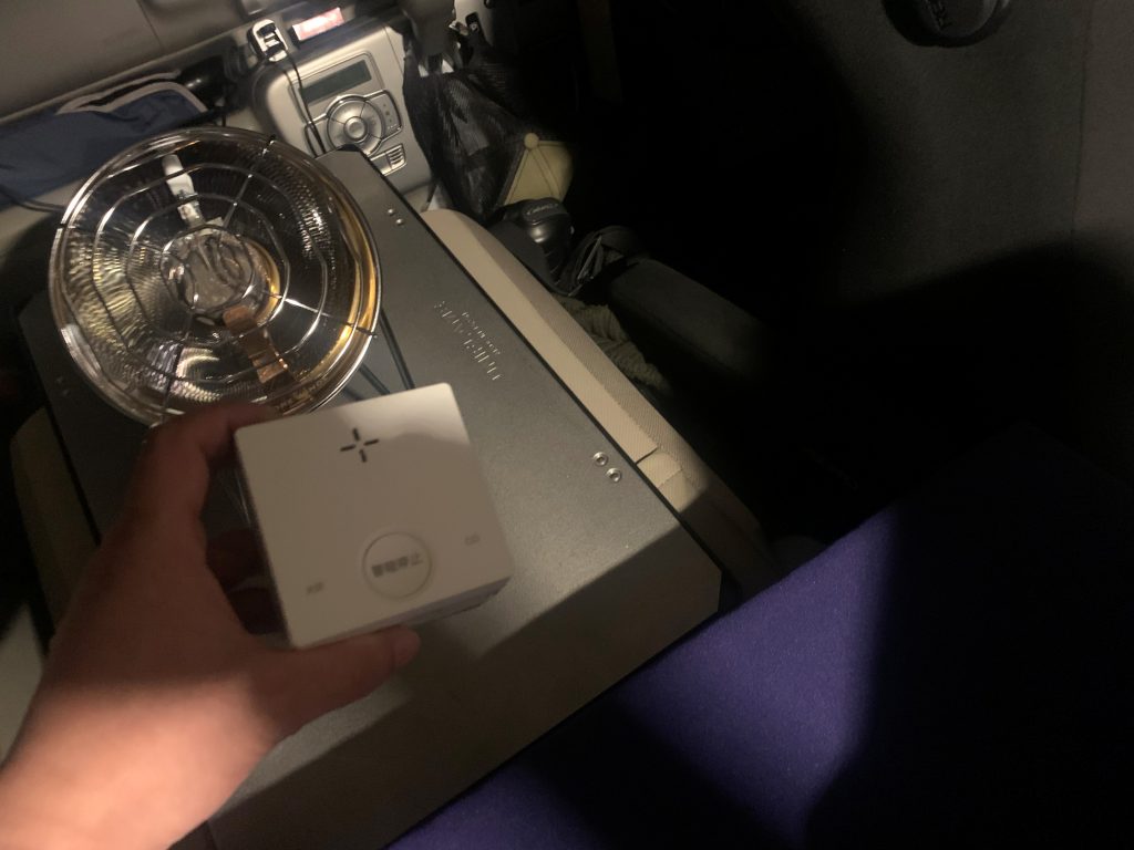 薄暗くて夜間は見えません💦あまりの寒さにキャンプで愛用しているイワタニ製のアウトドアヒーターを車内で使いましたら、ものの数分でCo(一酸化炭素)チェッカーが発動いたしました。色々な方がガスストーブを車内で使われているかと思いますがこれは大変危険です。